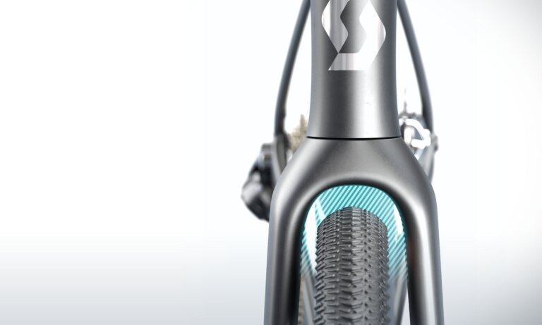 Prostor za gravel pnevmatike do 45 mm pomeni več oprijema, udobja in samozavesti – tudi na bolj grobih in nepredvidljivih terenih.