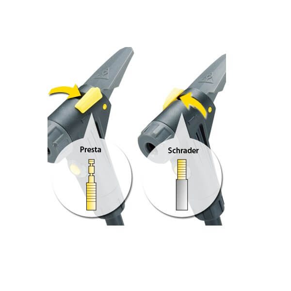 Izjemno učinkovita in vzdržljiva tlačilka je idealna za domačo ali profesionalno uporabo. Njena glava ima sprostitveno tipko za zrak, ki omogoča fino nastavitev zračnega tlaka. Prilagodi se na oba tipa ventilov. 120 cm dolga cev pa nam omogoča enostaven dostop do pnevmatik, ko je kolo na delovnem stojalu.