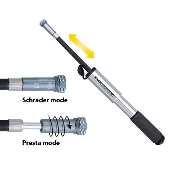 Prenosna tlačilka Topeak RaceRocket je dovolj lahka in kratka, da vas ne bo ovirala med vožnjo in jo lahko spravite tudi v žep dresa. Ta elegantna mini tlačilka za cestna in gorska kolesa ima aluminijasto ohišje in izvlečno polnilno cevko za lažji dostop do ventilčka. Oblika in materiali ohišja zagotavljajo zmogljivost tlačilke do pritiska 8 barov.