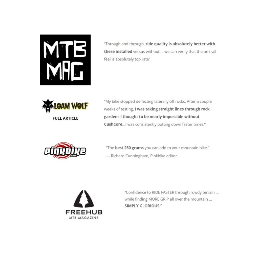 Revolucionarni tubless inserti Cushcore brez konkurence po katerih posega večinoma tekmovalcev v različnih disciplinah. V primerjavi z ostalimi inserti na trgu je Cushcore težji, kar pa opravičuje s svojo neuničljivostjo in posledično dolgo življenjsko dobo. Cushcore navdušuje že od leta 2016 in je bil leta 2017 nominiran kot VITAL MTB – Product Of The Year.