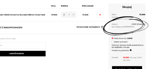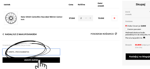 4. Kodo kopirajte v okence za kupone v košarici in kliknite »unovči kupon«
