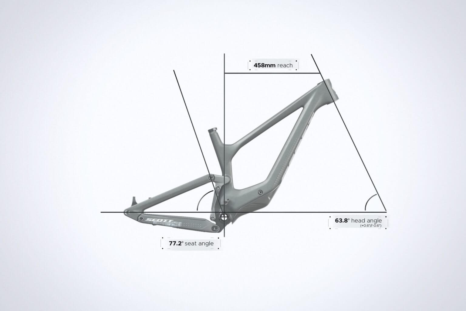 Ker so današnje zahteve tako raznolike in se preference vožnje razlikujejo od kolesarja do kolesarja je prilagodljivost geometrije postala ključni del procesa razvoja kolesa. Kot je to značilno za mnoga gorska kolesa znamke Scott, je kot krmilne cevi prilagodljiv. To omogoča prilagajanje terenu in slogu vožnje. Izbirate lahko med bolj pokončno nastavitvijo za večjo odzivnost pri nižjih hitrostih in manevrirnostjo skozi počasnejši, ožji in bolj tehnični teren ter bolj položnim kotom za stabilnost pri spustih z višjimi hitrostmi ter zaupanje v strmem terenu.