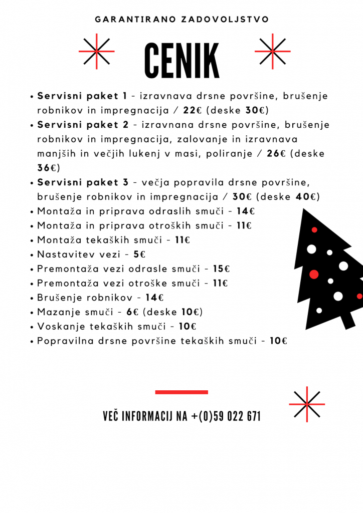 Ker je vzdrževanje zimske športne opreme enako pomembno kot vzdrževanje vašega kolesa, smo v trgovini Wheelbase za vas pripravili tudi ponudbo servisa in montaže smuči, desk in tekaših smuči.